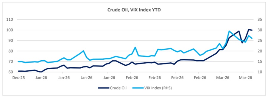 Ashmore menyoroti, pekan ini pasar global kembali dilanda volatilitas seiring berlanjutnya konflik di Timur Tengah yang memicu fluktuasi tajam harga komoditas, terutama minyak mentah. Harga minyak WTI sempat melonjak pada awal pekan setelah gangguan di Selat Hormuz menghambat lalu lintas kapal dan meningkatkan premi risiko perang.