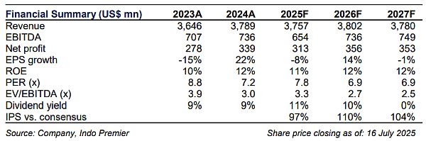 We maintain our FY25-27F NP estimates the results was in-line with ours and consensus expectations. However, we downgrade our rating to Hold (from Buy) as upside appears limited. Our TP remains at Rp1,800/share.Going forward, we think gas spread is likely to narrow in 4Q25F due to the absence of the surcharge fee recorded in 3Q25. Meanwhile, with an even softer oil price environment in 4Q25F, we think Saka Energi ASP is likely to remain under pressure, supporting our cautious stance. Upside risks: better-than-expected gas spreads, higher distribution volume, and firmer crude oil prices.
